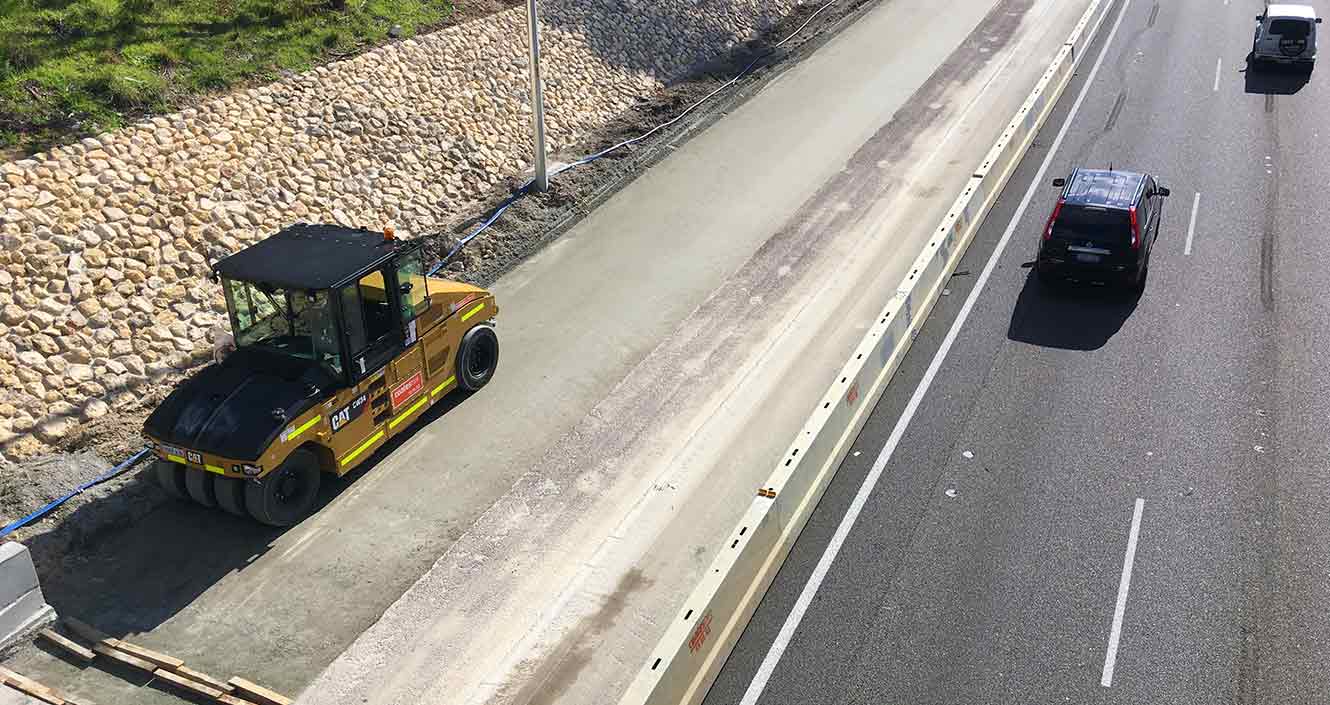 Works included the installation of 5.3 kilometres of high standard concrete barriers along the rail reserve, between Glendalough Station and Erindale Road as well as construction of a double exit lane on the Cedric Street.