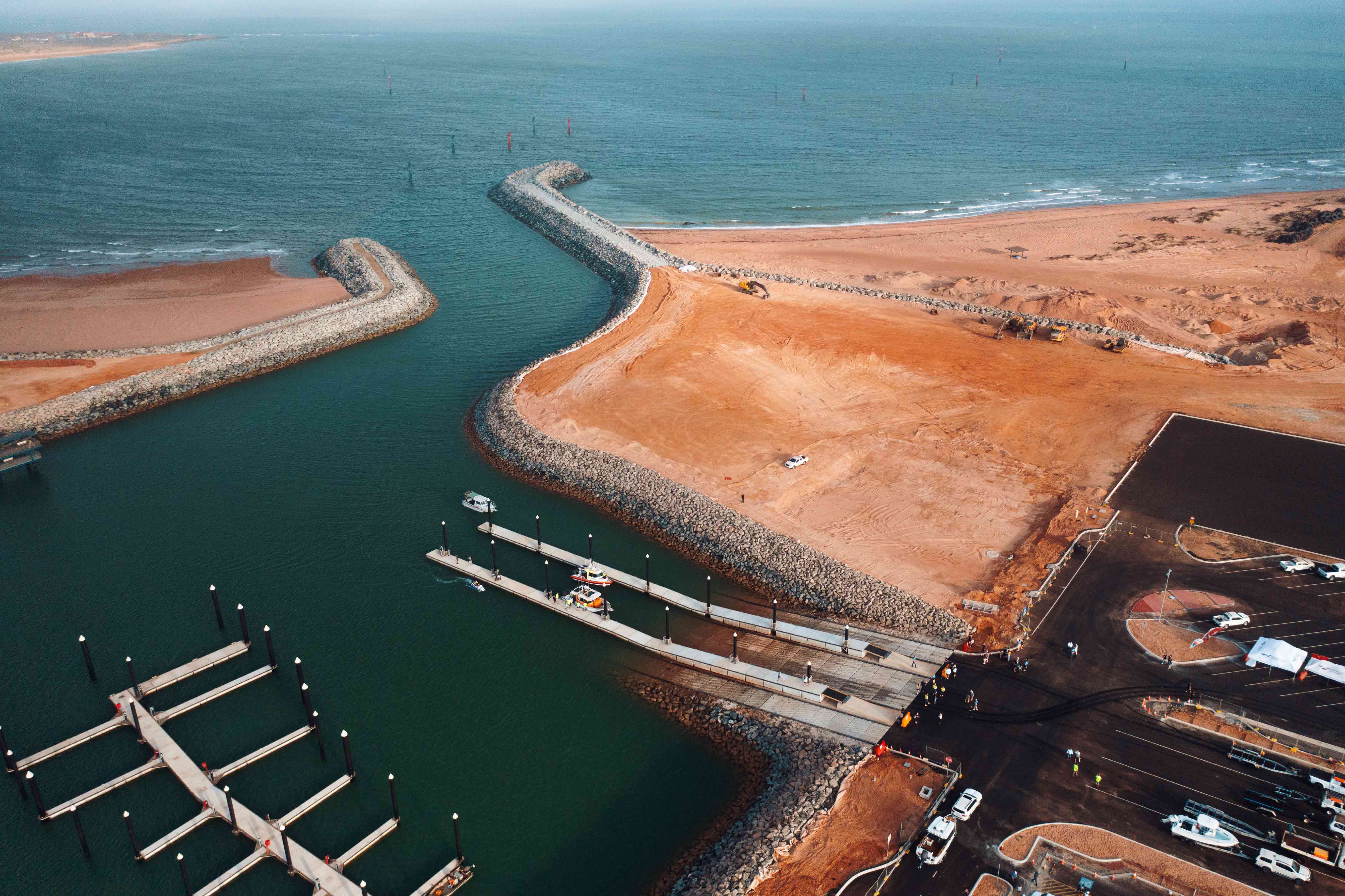 The marina opened to the community in late-November 2024, providing the Hedland community and visitors with access to a vibrant new space, as well as enhancing safety for recreational boaters.